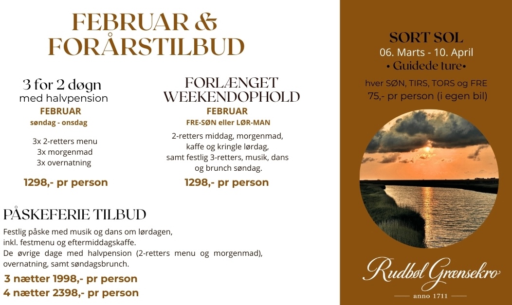 Med beliggenhed lige ved Rudbøl Sø og et stenkast fra grænsen til vores tyske naboer sydpå, ligger den charmerende Rudbøl Grænsekro, omgivet af marsken og noget af det mest ypperlige dyreliv i den danske natur.